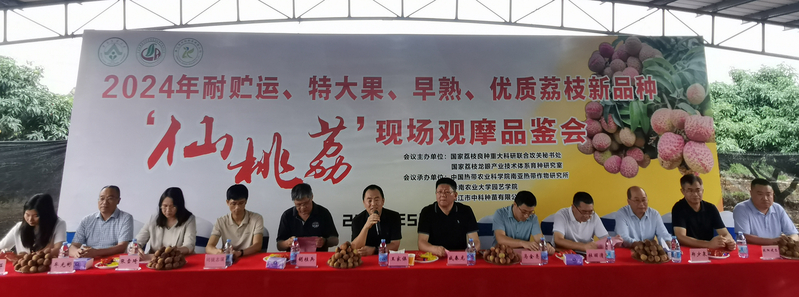 近日,“仙桃荔”现场观摩品鉴会在湛江市徐闻县召开。品鉴会由国家荔枝良种重大科研联合攻关秘书处和国家荔枝龙眼产业技术体系育种研究室主办,中国热带农业科学院南亚热带作物研究所、华南农业大学园艺学院和湛江市中科种苗有限公司承办。中国热带农业科学院南亚热带作物研究所所长杜丽清主持会议,我校副校长咸春龙、中国热带农业科学院副院长王家保出席会议。