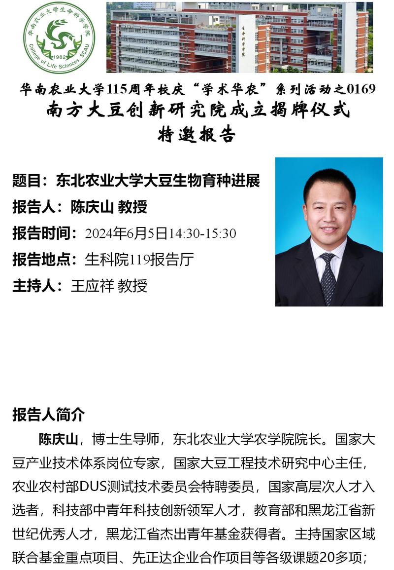 115周年校庆“学术华农”系列活动之0169:南方大豆创新研究院成立揭牌仪式特邀报告:东北农业大学大豆生物育种进展