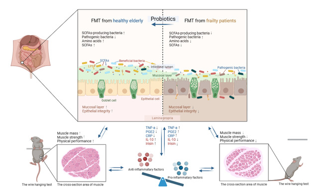 随着老龄化趋势加快,预计到2050年全球将有约16亿老年人。衰弱是与年龄相关的老年综合征,常见于高龄和多病共存的老年人,表现为应对应激能力下降,增加跌倒、失能和死亡风险,且加重了家庭和社会的医疗和经济负担。在社区老年人中,衰弱导致的肌少症患病率女性最高可达30%,特征为肌肉质量、力量和功能的逐渐丧失,严重影响生存质量。因此,预防和改善女性老年衰弱对实现“健康老龄化”具有重要意义。衰老过程中,免疫细胞清除能力下降、细胞碎片及内源性大分子的积累、肠道微生物及其代谢物等因素可导致慢性低度炎症,进而引起慢性组织损伤和抗应激能力减退,表现为肌少症等多系统稳态失衡。研究发现肠道菌群与衰弱存在相关性,但肠道菌群的改变是否是造成衰弱发生发展的原因仍不明确。
