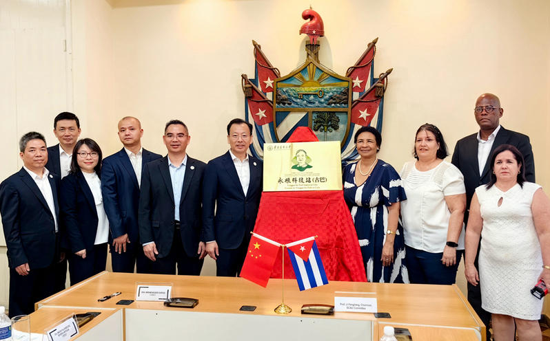 在哈瓦那大学揭牌成立我校第三个海外“永根科技站”