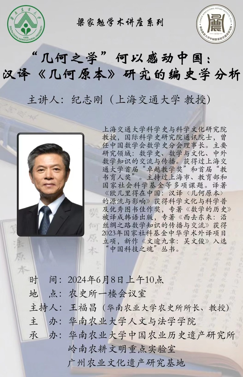 115周年校庆“学术华农”系列活动之0184:【梁家勉学术讲座系列】“几何之学”何以感动中国——汉译《几何原本》研究的编史学分析