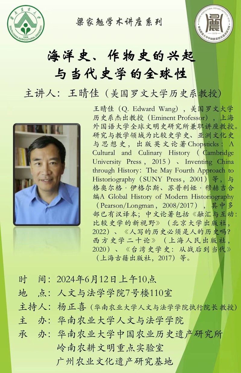 115周年校庆“学术华农”系列活动之0183:【梁家勉农史讲座系列】海洋史、作物史的兴起与当代史学的全球性