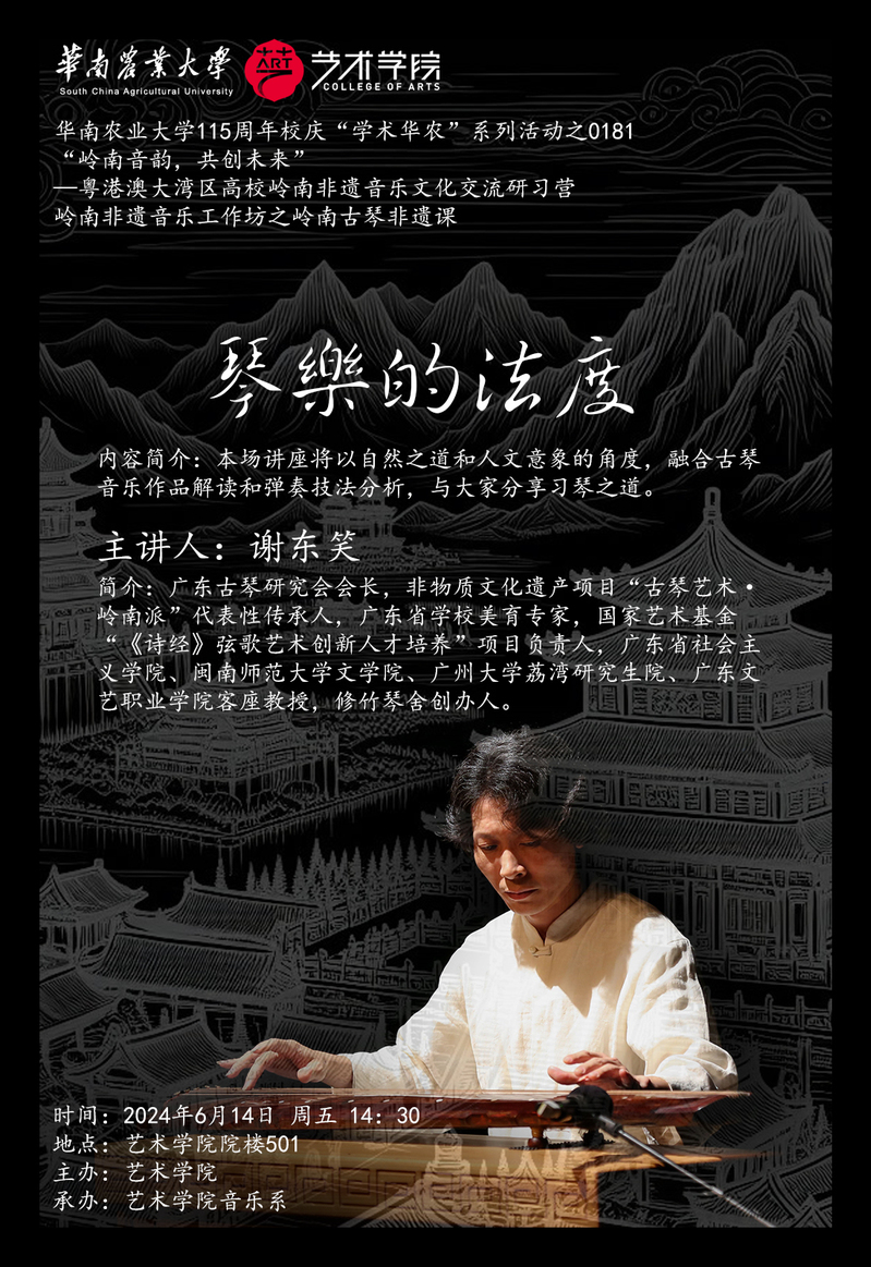 115周年校庆“学术华农”系列活动之0181—— 关于举办“岭南古琴非遗课:琴乐的法度” 学术活动讲座的通知