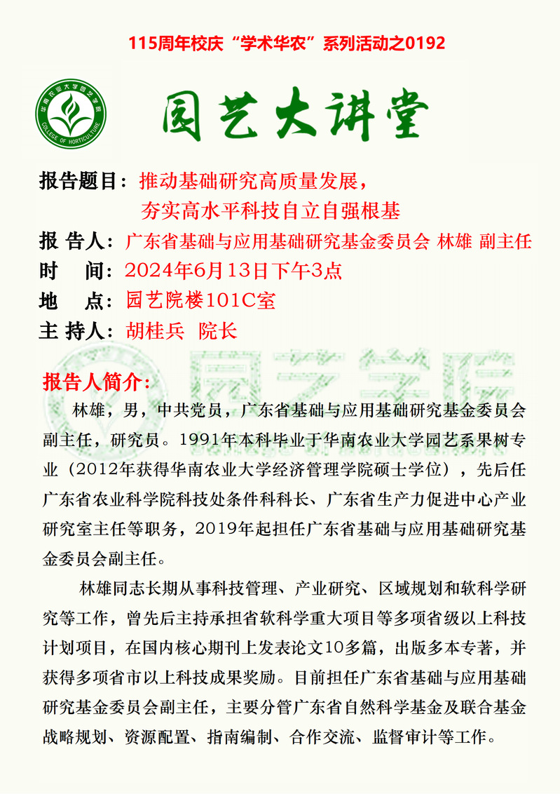 115周年校庆“学术华农”系列活动之0192:园艺大讲堂-推动基础研究高质量发展, 夯实高水平科技自立自强根基