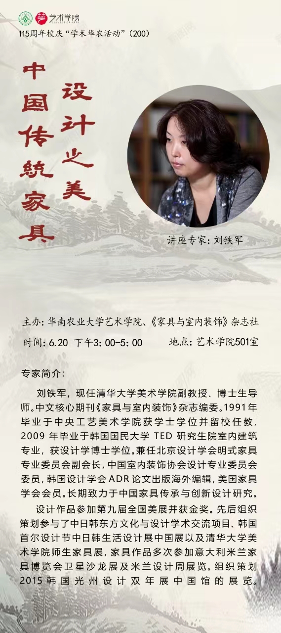 115周年校庆“学术华农”系列活动之0200—— 关于举办“中国传统家具设计之美” 学术活动讲座的通知