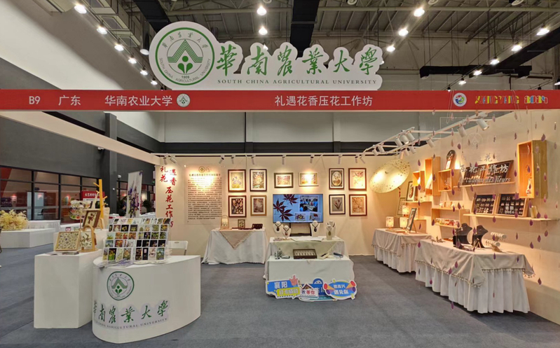 我省共有18个项目进入全国现场展演阶段,为做好学校参加展演的组织工作,更好展示我校美育成果、确保现场展演工作顺利,党委学生工作部(党委研究生工作部)、校团委与园艺学院、艺术学院参赛师生做了充分、细致的准备工作,务求充分体现学校精心打造与学科建设相结合的美育工作特色。礼遇花香压花工作坊以其独特的艺术魅力,得到了教育部党组成员、副部长、总督学王嘉毅,湖北省委常委、襄阳市委书记王祺扬、广东省教育厅二级巡视员陈健生等领导的充分肯定,赢得了专家评委、观展观众的一致好评,并在展演期间吸引了众多高考考生和家长驻足咨询。