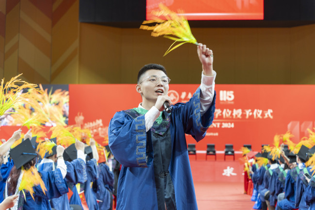 三是学无止境,行以致远,始终做开拓创新的弄潮儿。“时代对于具有原始创新精神、具备交叉学科素养、掌握前沿科技的高素质‘新质人才’的迫切需求前所未有。”薛红卫提醒同学们,创新源于学习与实践,在毕业后要继续努力,弘扬“笃学明德、躬行践履”的丁颖精神,保持终身学习,在各自的岗位上勇于开拓、勇挑大梁、勇克难关,为发展新质生产力做出贡献。