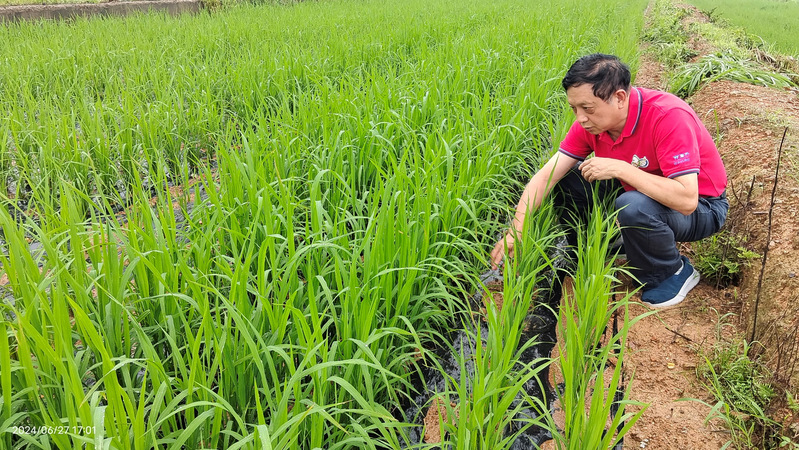 28日,罗利军还率队赴江西省上饶市广丰区皂头镇,实地考察了500亩连片旱直播旱管种植的节水抗旱稻。在这片新开垦的红壤土山改田中,节水抗旱稻品种旱优73长势茂盛,表现较好,奠定了今年粮食丰收的基调。调研组针对部分地块田间轻微草害的情况,给种植户提出了合理的技术指导建议。节水抗旱稻带动“撂荒地”复耕复种,不仅能提高土地利用效率,增加粮食产量,保障粮食安全,同时也提升了农业生产的质量和效益。