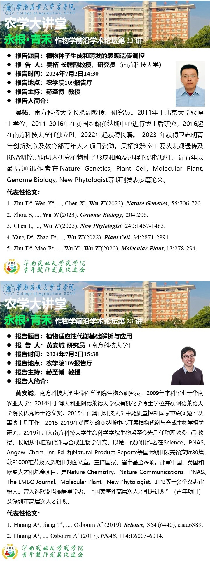 115周年校庆“学术华农”系列活动之0234农学大讲堂--“永根•青禾”作物学前沿学术论坛第23讲