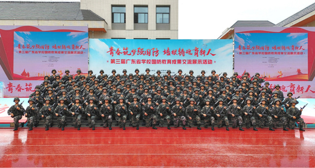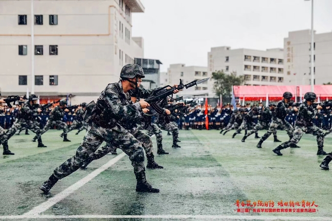 近期,第三届广东省学校国防教育成果交流展示活动在广东科贸职业学院(清远校区)举办,我校120名军训教官完成的特色课目展演《刺杀》,通过层层选拔,最终荣获特等奖,并在闭幕式上贡献了震撼全场的精彩表演。