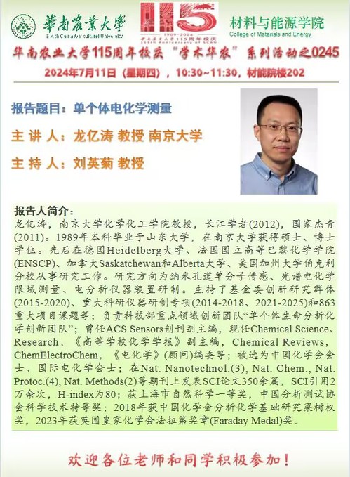 115周年校庆“学术华农”系列活动之0245: 材能学院学术报告:单个体电化学测量