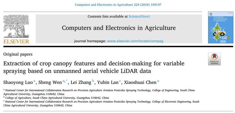 近日,我校工程学院硕士研究生罗少勇以第一作者身份在国际知名期刊Computers and Electronics in Agriculture(中科院一区Top,影响因子8.3)发表题为“Extraction of crop canopy features and decision-making for variable spraying based on Unmanned Aerial Vehicle LiDAR data”的研究论文。论文提出将棉花冠层形态融入到无人机变量施药决策中,探索棉花冠层信息实时获取,喷施作业参数在线决策的无人机智能化喷施机理研究,为农用无人机的精准变量喷施提供了新的研究思路与方法。