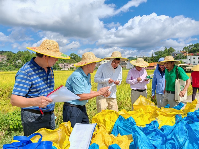 专家组一致认为:该品种田间长势均衡、株型好,有效穗数多、穗大,结实率高、熟色好,田间无明显病虫害发生;随机抽取三块田实收测产,最高产量达到741.6公斤/亩,平均亩产为723.5公斤/亩,达到了农业农村部制定的华南稻区双季稻超级稻产量指标。