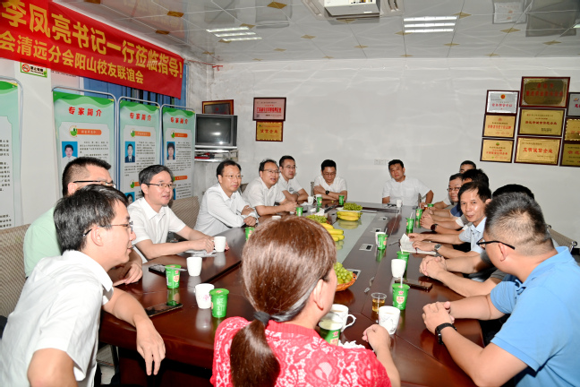 阳山县委书记邓菲接待了李凤亮一行并座谈。邓菲表示,作为广东省农业和林业大县,阳山近年立足省北部生态发展区的“一区定位”,扎实推动乡村振兴和城乡融合发展的“二轮驱动”,全力加快绿色经济、交通体系和民生事业“三大提质”;特别是实施“百千万工程”以来,更是加大推进力度,不断增强县域发展综合实力。她对华农在产业帮扶、教育培训、人才培养等方面为阳山做出的贡献表示感谢,并介绍了阳山在县域经济和基础教育教学等方面的下一步工作计划,希望校地双方把握“双百行动”契机,加强联动、创新合作,做好结对共建,加快推动阳山“百千万工程”和高质量发展。
