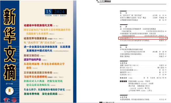 罗必良教授《论农业新质生产力》一文获《新华文摘》转载