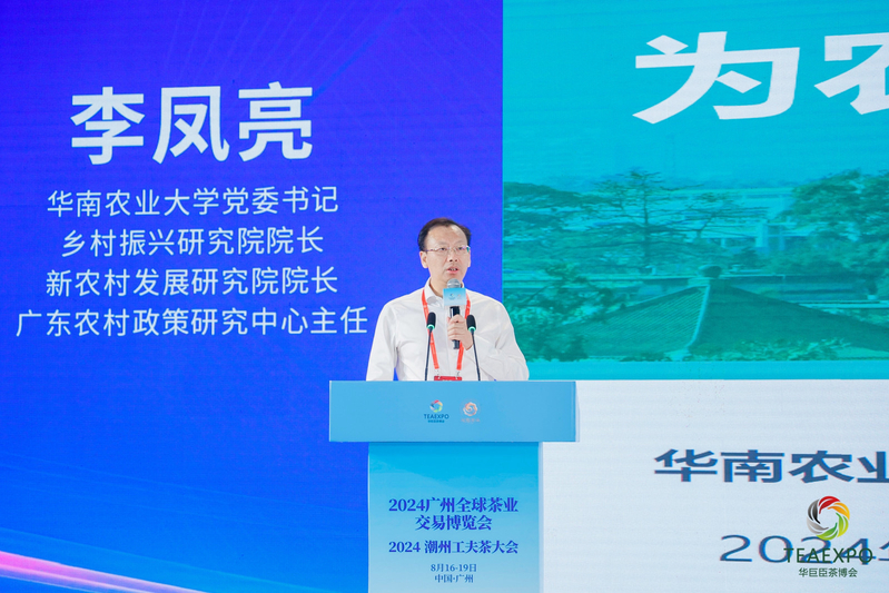 8月16日,由广州全球茶业交易博览会组委会主办的“2024茶产业新质生产力研讨会——中国茶·品牌出海”在广州广交会展馆隆重举办。大会以“主题演讲+圆桌对话”的形式,邀请政、产、学、研多位乡村振兴与茶领域国内著名专家深入探讨茶产业的新发展、新业态、新经验、新方法。我校党委书记李凤亮受邀参加并作题为《为农业强国建设培育创新型农林人才》的报告。