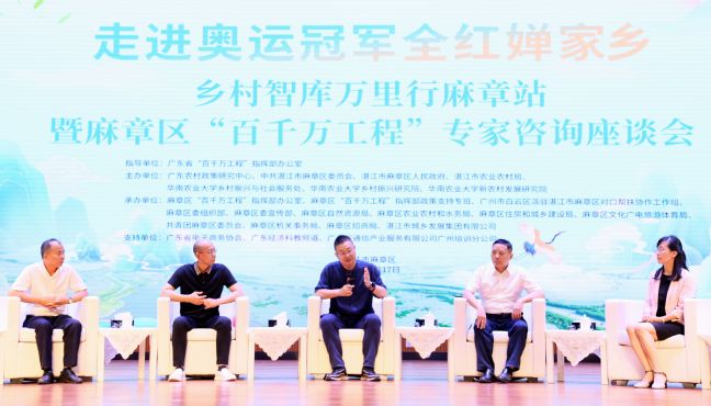 为推进“百千万工程”走深走实,全力促进农文旅产业提质增效,加快推进麻章区实现高质量发展,8月17日,乡村智库万里行麻章站活动暨“百千万工程”专家咨询座谈会在湛江市麻章区举办。本次活动由广东省“百千万工程”指挥部办公室指导,广东农村政策研究中心、麻章区委区人民政府、华南农业大学乡村振兴社会服务处、华南农业大学乡村振兴研究院、华南农业大学新农村发展研究院主办,麻章区各相关部门承办、广东省电子商务协会、广东经济科教频道协办,聚焦乡村振兴和“百千万工程”,共谋发展大计、共享合作机遇、共创未来篇章。
