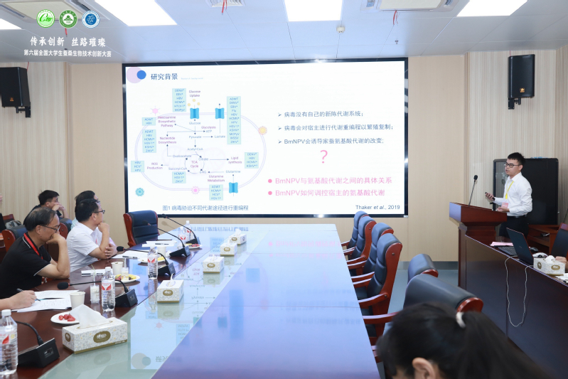大赛设有本科生、硕士生和博士生三个组别。其中,动物科学学院2021级本科生郭意瑶的项目“家蚕C型溶解酶的真核表达及其抗BmNPV研究”首次利用CHO真核表达系统表达纯化BmC-LZM,从蛋白质层面直接证明了BmC-LZM的抗病毒作用,为开发新的有效抗病毒药物提供了理论参考。2022级硕士研究生黄一桂的参赛项目“家蚕溶菌酶BmC-LZM-like2和BmC-LZM-like4的抗病毒作用:功能和表达分析”,提出BmC-LZM-like2和BmC-LZM-like4可通过Toll途径被激活,从而抑制BmNPV在家蚕体内的复制,为溶菌酶应用于家蚕抗BmNPV、减少家蚕饲养经济损失提供了新的材料。2023级博士研究生费世港的项目“BmNPV对宿主细胞氨基酸代谢的重编程以促进自身复制”,通过靶向氨基酸代谢组学分析家蚕血淋巴中氨基酸的变化,揭示了BmNPV代谢重编程宿主细胞以满足复制需求的机制,为开发新的疾病预防策略提供了新思路。