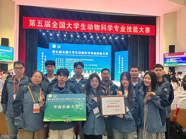 8月27日至29日,第五届全国大学生动物科学专业技能大赛在东北农业大学举行,来自中国农业大学、华中农业大学等75所高等院校的代表队同台竞技。我校动物科学学院学子刘经宇、常安其、齐俪轩、李忠杰、陈耿豪组成的代表队荣获团体特等奖以及3单项二等奖,这也是我校学子在该赛事中第三次获得团体特等奖。