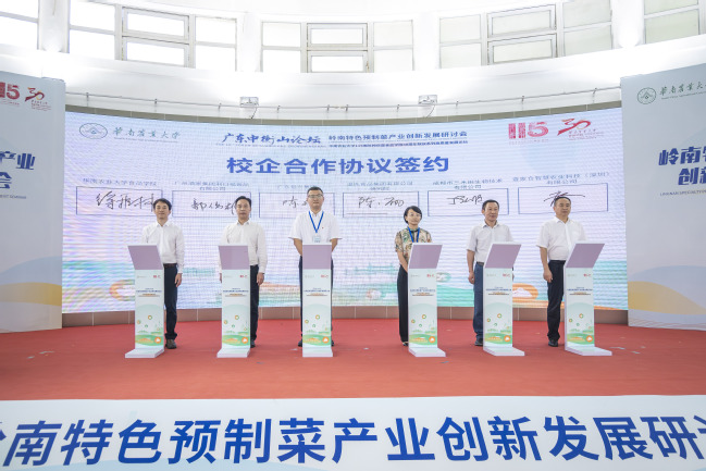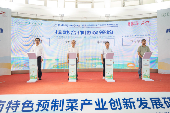 会上,华南农业大学岭南特色预制菜创新研究院揭牌成立,现场还发布了华南农业大学预制菜十大创新技术,并签署了一系列校地、校企合作协议。