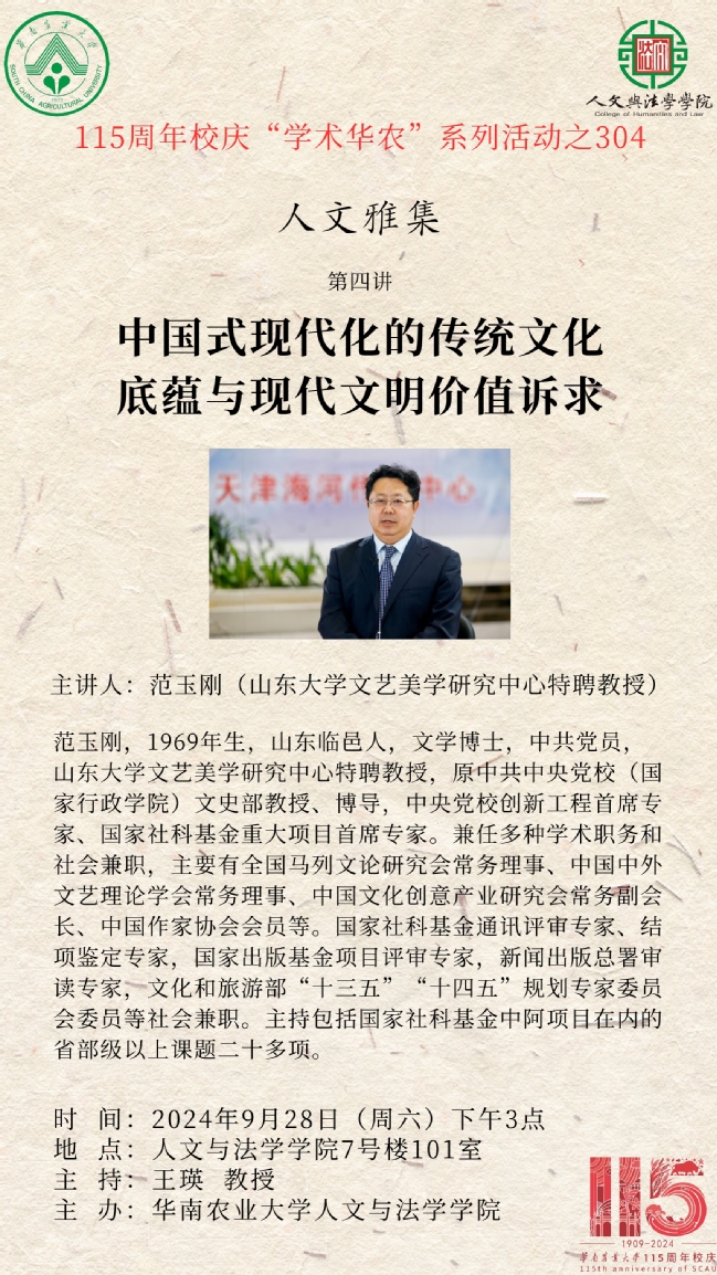 115周年校庆“学术华农”系列活动之0304:【人文雅集 】中国式现代化的传统文化底蕴与现代文明价值诉求
