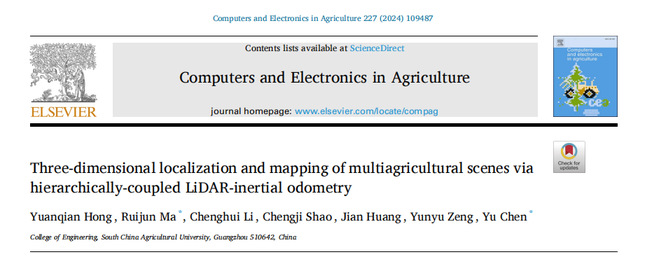 近日,我校工程学院马瑞峻/陈瑜团队在国际知名期刊Computers and Electronics in Agriculture(中科院一区Top,影响因子8.3)上发表题为“Three-dimensional localization and mapping of multiagricultural scenes via hierarchically-coupled LiDAR-inertial odometry”的研究论文。论文提出一种基于无特征设计的分层耦合策略处理激光点云数据和惯性测量数据的激光惯性SLAM(Simultaneous Localization and Mapping,同时定位与建图)系统,为农业机器人在不同农业种植场景进行空间定位和环境测绘提供了新的研究思路和方法。