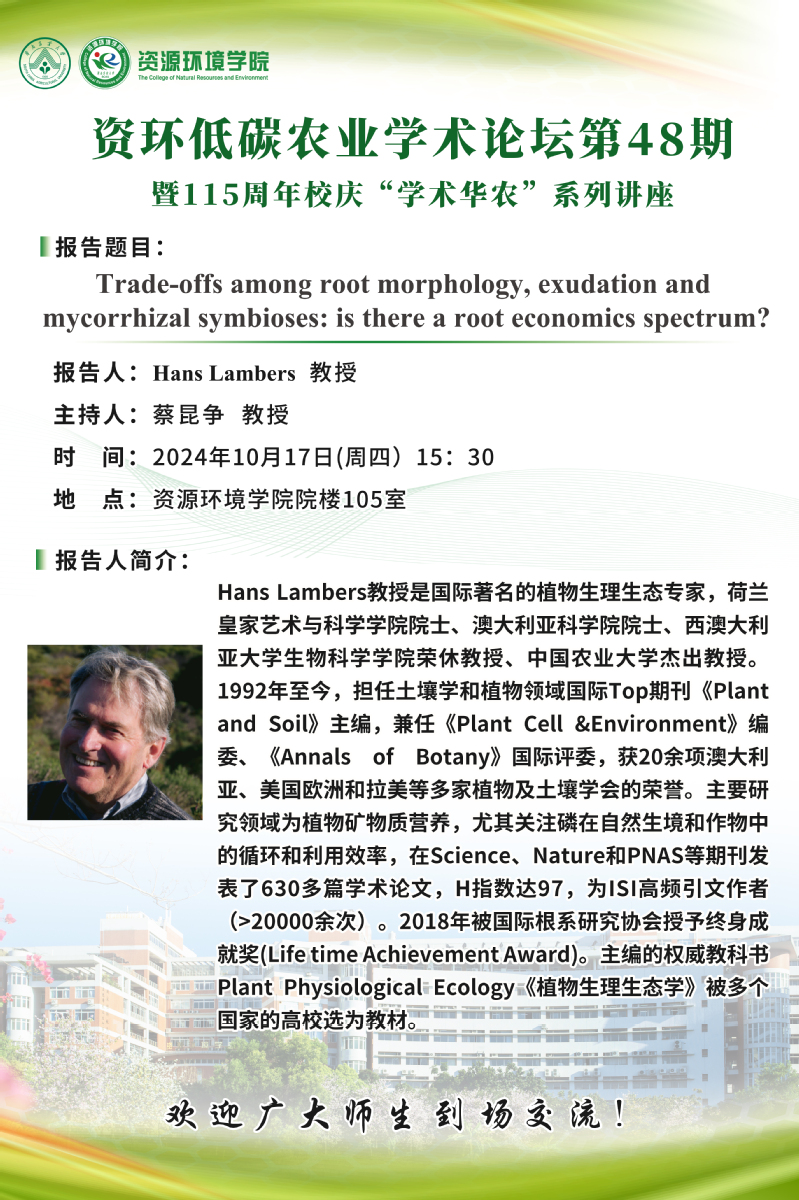 115周年校庆“学术华农”系列活动之0300:资环低碳农业学术论坛第48期