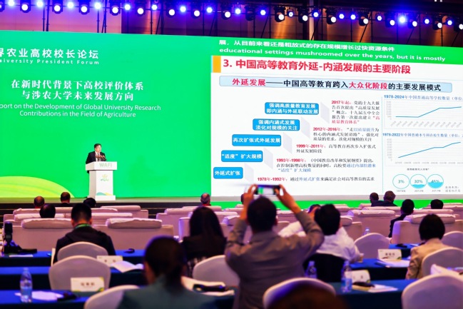 10月10日,2024年世界农业科技创新大会专题论坛“世界农业高校校长论坛”在北京平谷举行,来自国内外60余所高校代表参会。华农校长薛红卫受邀出席并作专题报告,畅谈新时代背景下涉农大学的高质量发展道路。