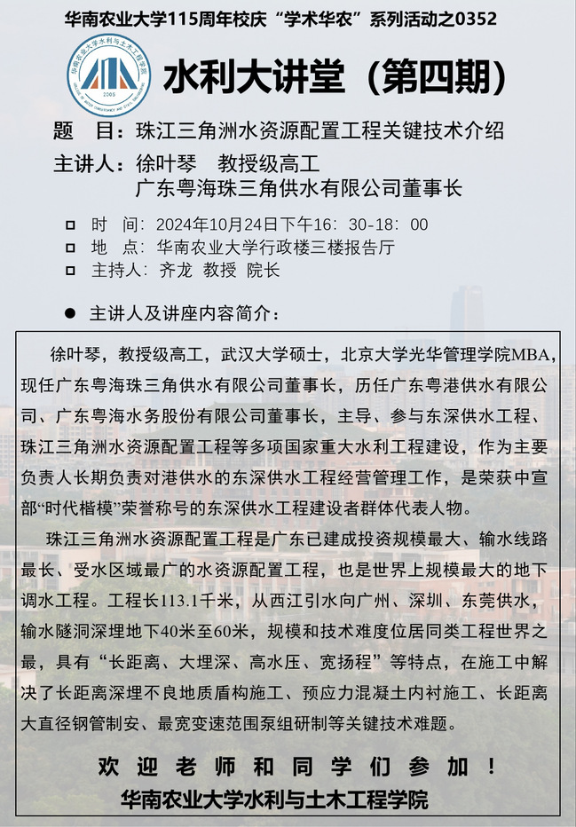 115周年校庆“学术华农”系列活动之0352:珠江三角洲水资源配置工程关键技术介绍