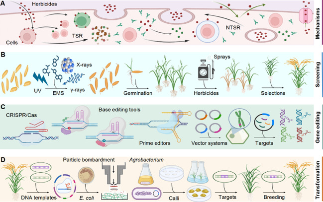 农艺措施如轮作、覆盖、灌溉能控制稻田杂草,但除草剂对直播水稻更具成本效益。全球年农田除草剂用量超300万吨,已发现272种抗除草剂杂草生物型(至少40种稻田杂草)。新时代下,传统育种向先进生物技术育种过渡,结合这两种育种方法将显著加快育种进程。