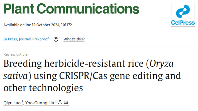 近日,农学院、亚热带农业生物资源保护与利用国家重点实验室刘耀光院士团队在国际知名学术期刊Plant Communications(中科院一区Top期刊,影响因子10.5)在线发表了题为“Breeding herbicide-resistant rice (Oryza sativa) using CRISPR/Cas gene editing and other technologies”的研究综述。该论文系统总结了抗除草剂水稻育种的研究进展,综述了水稻抗除草剂研究的各种技术,列举并分析了常用抗性基因实例,展望了基因编辑技术在未来水稻育种中对抗性基因靶向修饰中的应用,为水稻生产尤其直播栽培系统等提供有益的参考。