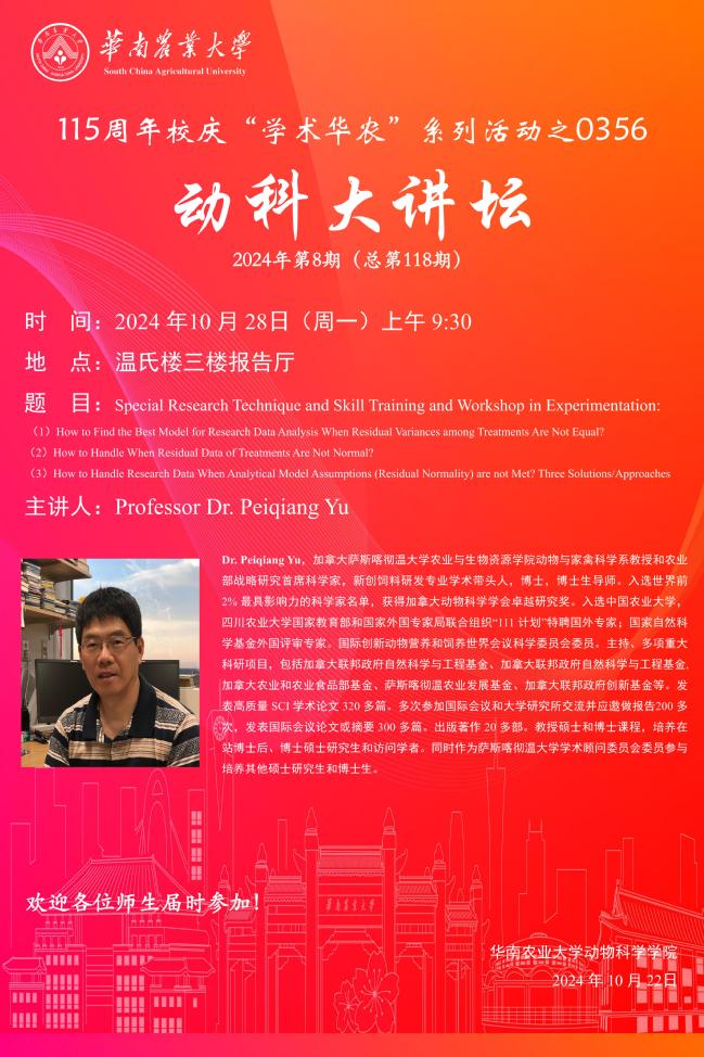 115周年校庆“学术华农”系列活动之0356:动科大讲坛第8期:Special Research Technique and Skill Training and Workshop in Experimentation