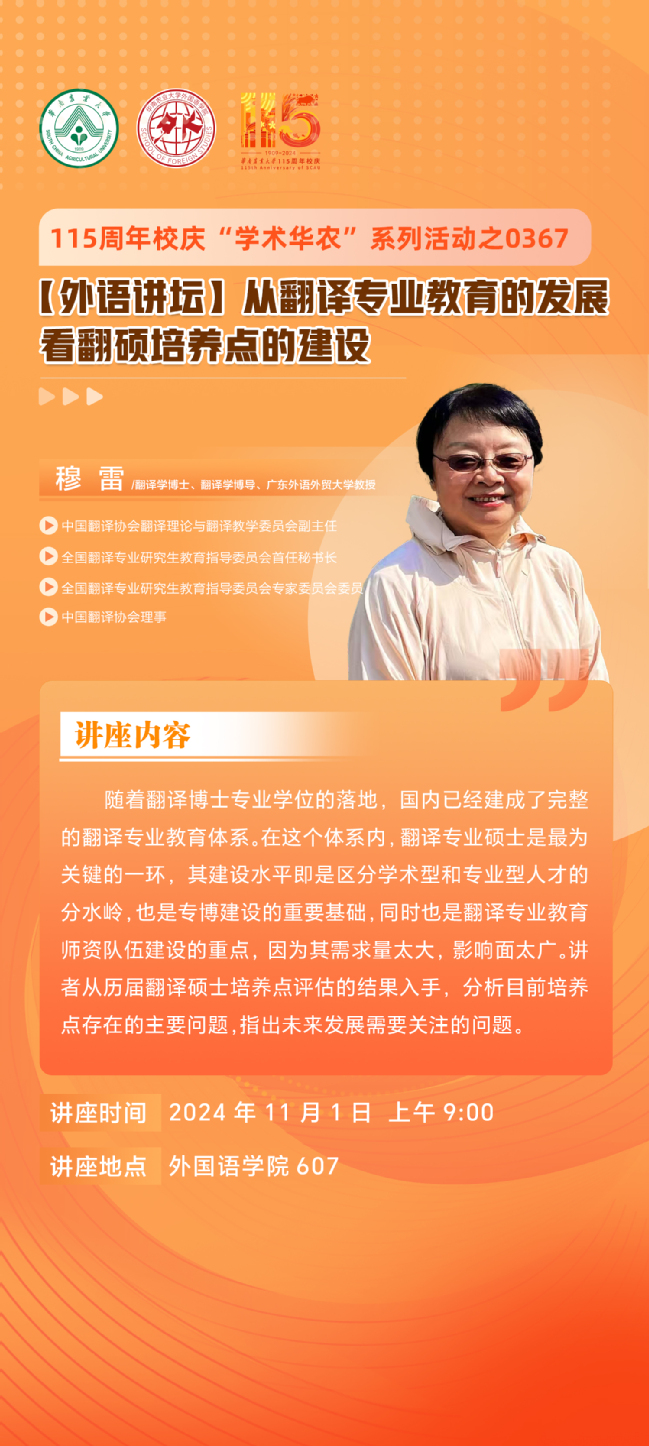 115周年校庆“学术华农”系列活动之0367:【外语讲坛】从翻译专业教育的发展看翻硕培养点的建设