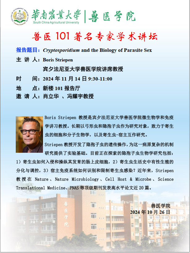 115周年校庆“学术华农”系列活动之0373: Cryptosporidium and the Biology of Parasite Sex