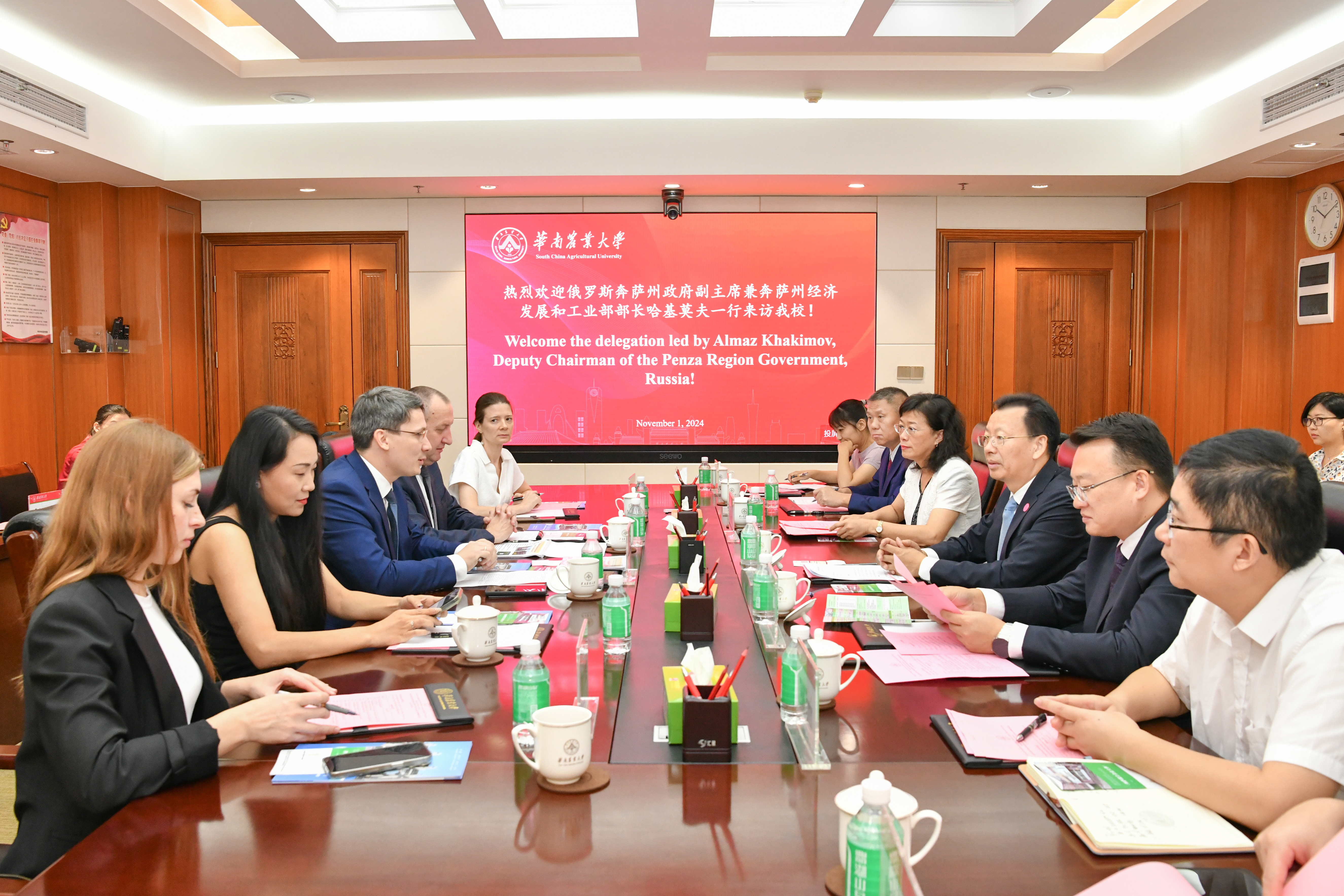 今年正值中国-俄罗斯建交75周年,为拓展与“一带一路”沿线国家的教育科研合作,11月1日,俄罗斯奔萨州政府副主席兼奔萨州经济发展和工业部部长哈基莫夫、奔萨国立农业大学校长库哈列夫一行5人利用来粤参加广交会之机到访我校,探讨与我校开展科教合作的事宜。我校党委书记李凤亮热情接待来宾并座谈交流。