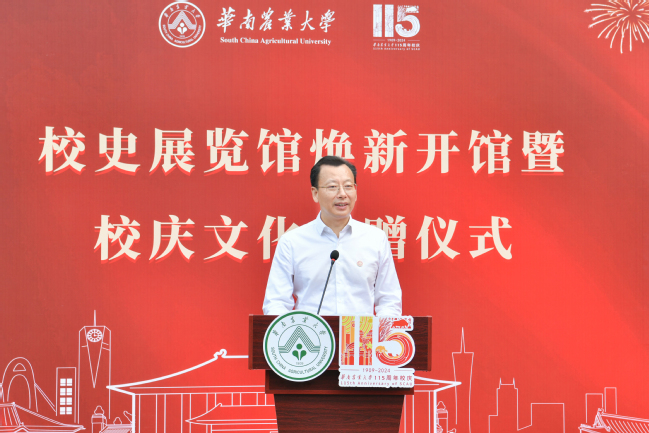 李凤亮对各位爱心人士的慷慨捐赠和大力支持表示衷心感谢。他表示,文化捐赠将有力促进校园文化建设高质量发展,而对校史馆进行改造升级,是对华农创业史、奋斗史、发展史的致敬,是学校115周年校庆系列工作中的重点之一。新的校史馆达到了校史脉络更加清晰、展陈手段更加先进、叙事重点更加突出、参观体验更加舒适、后续调整优化更加便利的预期目标。他强调,要深入学习贯彻习近平文化思想,把文化建设作为学校建设的“灵魂工程”来抓,进一步加强校园文化建设顶层设计和整体谋划,加大力度整合校园文化资源,建好用好校园文化阵地,厚植文化育人沃土,擦亮“文化华农”品牌。华农的发展永远在路上,书写校史没有完成时。我们要以对党和人民负责、对华农历史负责的态度,守正创新、开拓进取,踔厉奋发、真抓实干,加快推进“双一流”建设,在华农发展的历史上留下浓墨重彩的一页。
