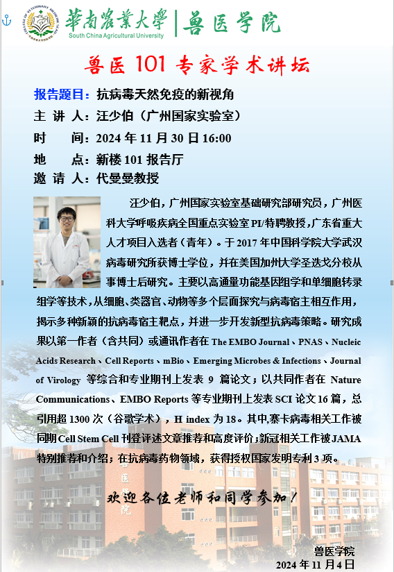 115周年校庆“学术华农”系列活动之0389:抗病毒天然免疫的新视角