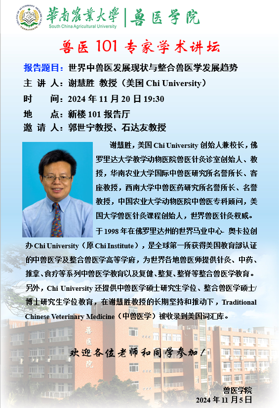 115周年校庆“学术华农”系列活动之0395:世界中兽医发展现状与整合兽医学发展趋势