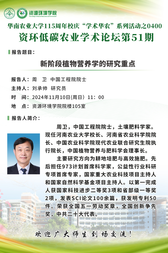 115周年校庆“学术华农”系列活动之0400:资环低碳农业学术论坛第51期