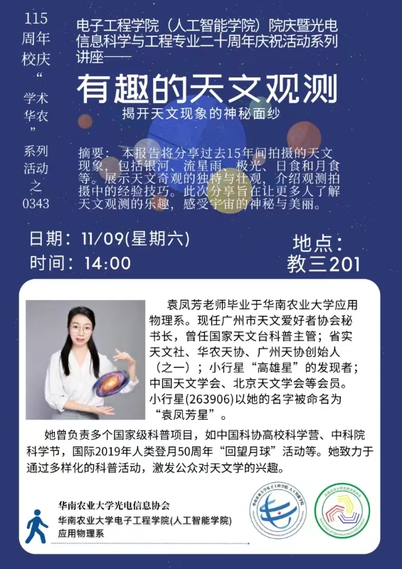 115周年校庆“学术华农”系列活动之0343:【学术电智】有趣的天文观测:揭开天文现象的神秘面纱