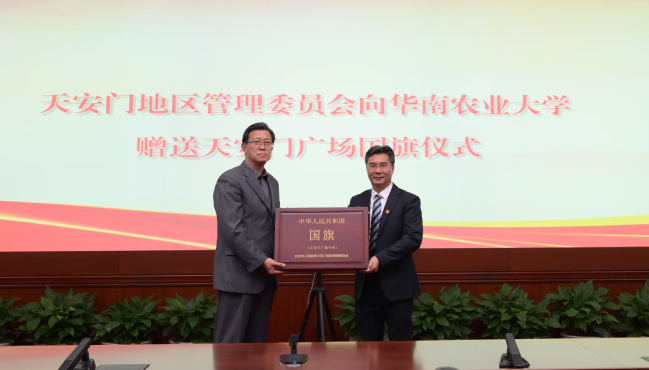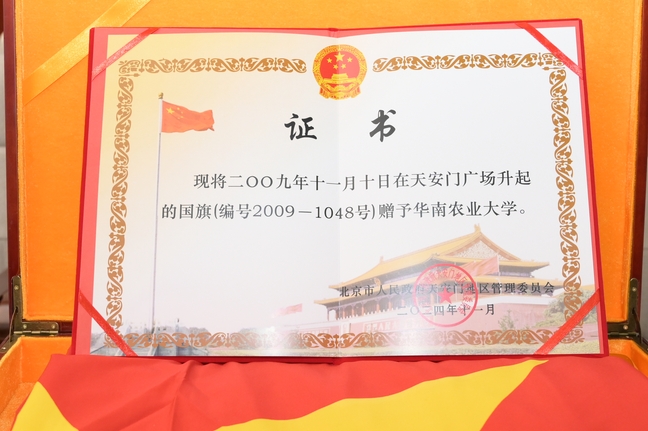 11月8日,在即将迎来办学115周年之际,华南农业大学获赠了一份来自北京的特殊礼物:由天安门地区管委会赠送的、一面曾在天安门广场冉冉升起的五星红旗。