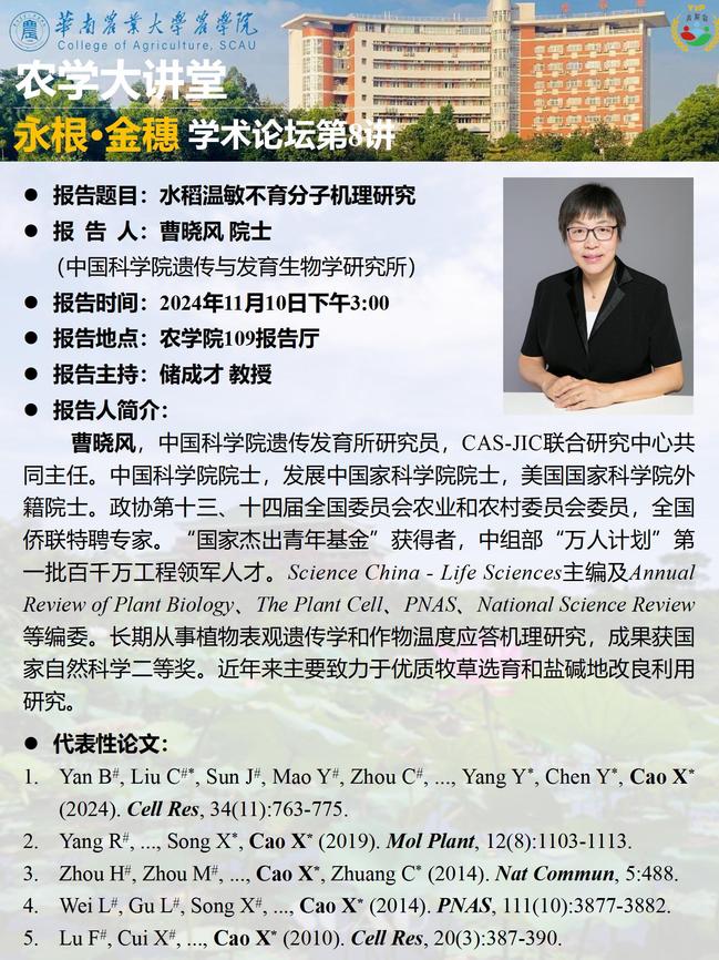 115周年校庆“学术华农”系列活动之0410农学大讲堂--“永根•金穗”学术论坛第8讲