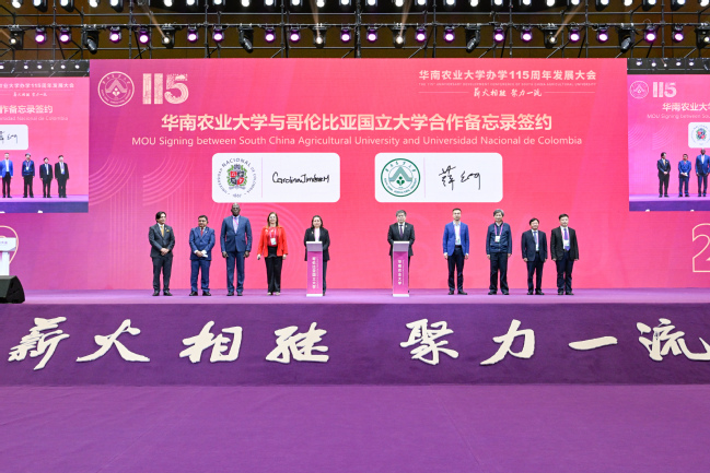 近年来,华农持续推进国际交流与合作,牵头成立了“中国-拉丁美洲农业教育科技创新联盟”,覆盖中拉15个国家、74个盟员单位,推动多个农业、教育、语言、文化项目在拉丁美洲落地。会上举行了华南农业大学与哥伦比亚国立大学合作备忘录签约暨中国-拉丁美洲国际联合学院启动仪式。据了解,未来华农将与拉美高校共同建设“中国-拉丁美洲国际联合学院”,围绕人才培养、科技创新、技术转移、成果转化、智库研究和语言文化培训等方面继续深入合作。