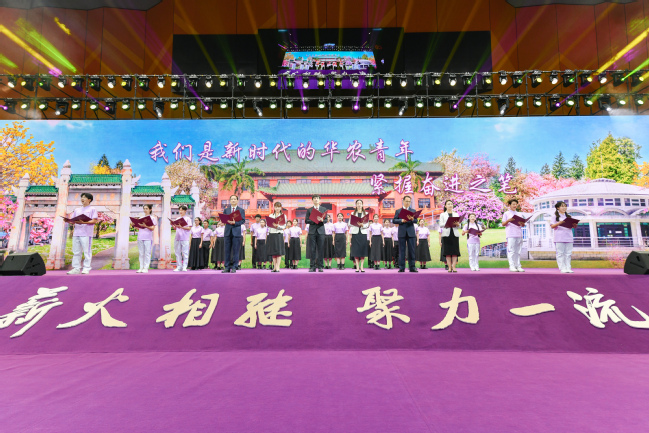 “大美华农,你我同行。”“今天,我们向新出发!”在大会的尾声,师生校友代表共同为学校办学115周年献词。一首饱含深情的配乐诗朗诵《大美华农 你我同行》,表达了为母校接续奋斗的决心,以及对华农未来的期盼与祝福。
