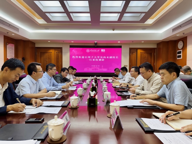 11月11日下午,石河子大学党委常委、副校长吴向未一行来校调研交流,副校长温小波接待来宾并座谈。