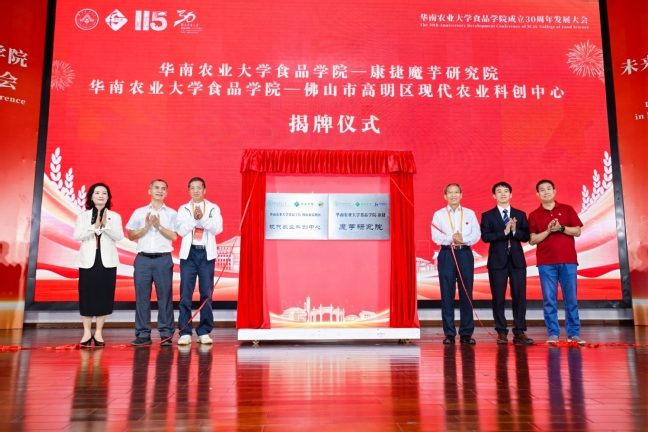 会上举行了华南农业大学食品学院——东莞市茶山镇合作签约仪式,华南农业大学食品学院—康捷魔芋研究院、华南农业大学食品学院—佛山市高明区现代农业科创中心揭牌仪式,大额捐赠证书颁发仪式。