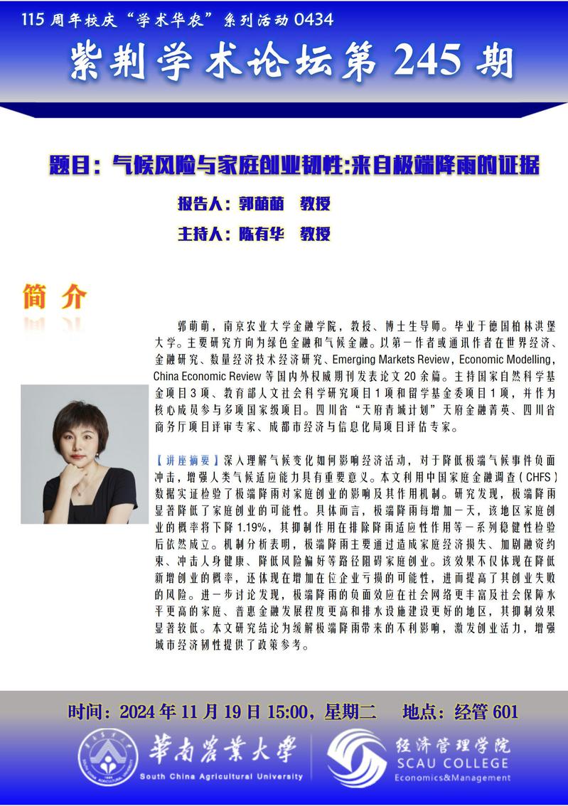 115周年校庆“学术华农”系列活动之0434:紫荆学术论坛第245期