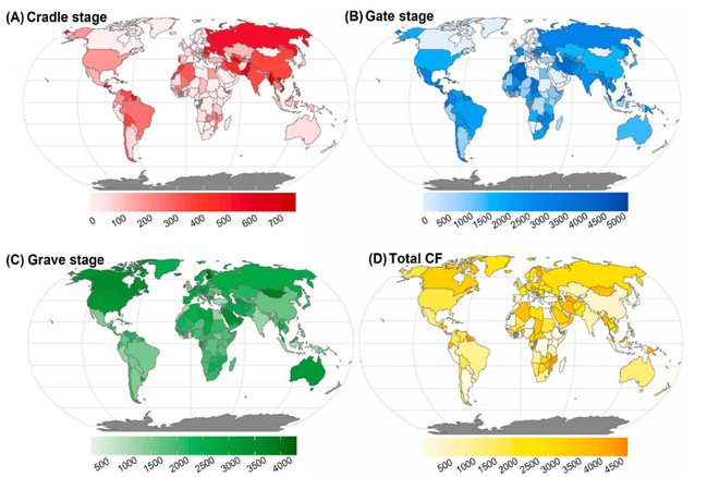 图5 全球尺度上稻谷生产和消费的碳足迹示意图