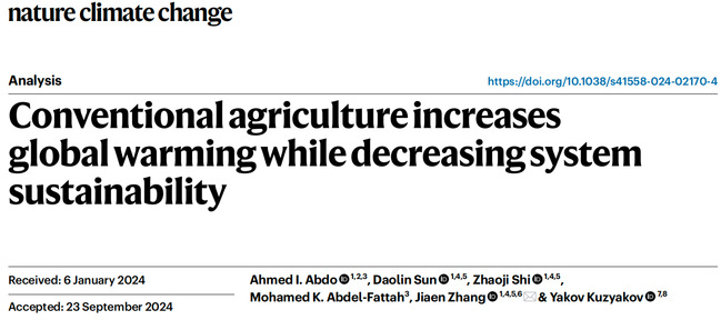 文章强调了常规集约化农业生产对全球变暖的影响作用,并在《巴黎协定》的框架下提出了缓解全球气候变化的可能方案,且确保在对作物产量没有负面影响的前提下增加系统的可持续性水平。