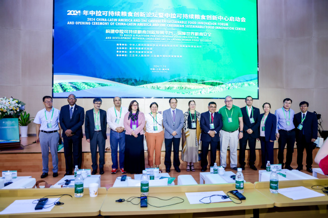 近日,由副校长仇荣亮带队,哥伦比亚国立大学、巴西马托格罗索联邦大学、秘鲁国立农业大学、古巴哈瓦那大学等中拉联盟盟员高校代表团赴海南三亚出席2024年中拉可持续粮食创新论坛暨中拉可持续粮食创新中心启动会,并作题为“中拉大豆产业技术创新发展规划”的主旨报告,为助力中拉可持续粮食创新合作分享华农经验、发出华农声音。